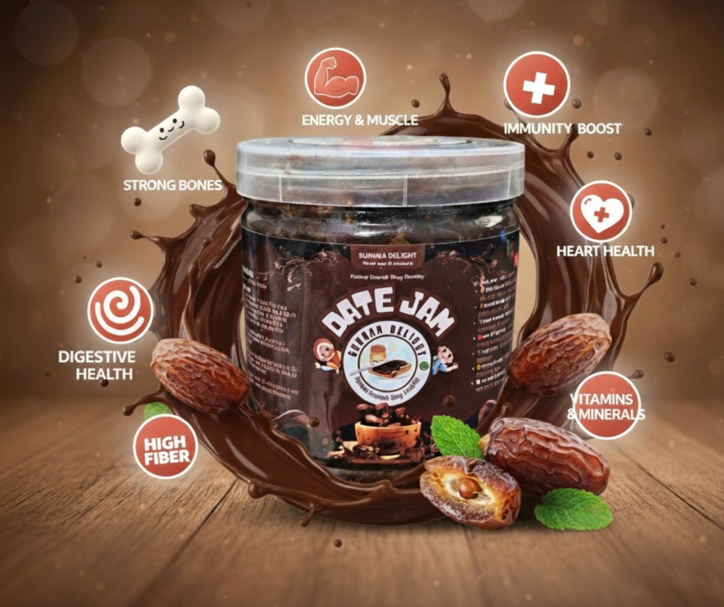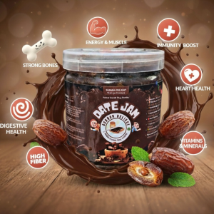 Date Jam তৈরি হয় ইম্পোর্টেড প্রিমিয়াম খেজুর দিয়ে বিশেষ প্রক্রিয়ায় অর্গানিক ইনগ্রেডিয়েন্টস দিয়ে যা ৬মাস+ বয়সি বাচ্চা থেকে বৃদ্ধ সবার জন্য অত্যন্ত মুখরোচক, স্বাস্থসম্মত এবং পুস্টিকর
